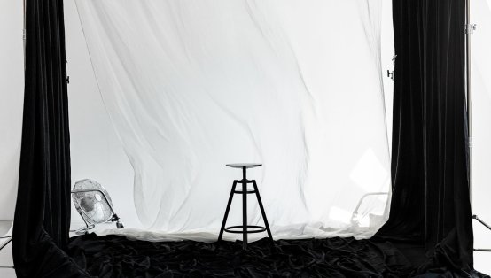 ▫️Шатер из чёрных канвасов и белой вуали. Можно добавить контровой свет или снимать с естественным освещением.