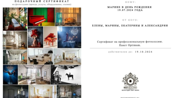 Получить такой сертификат в подарок будет приятно не только людям из сферы, но и тем, кто хочет впервые попробовать себя в роли фотографа или модели.