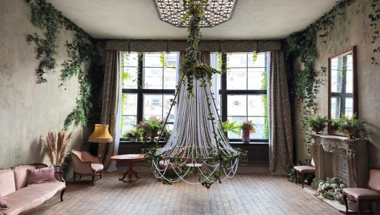 Зал «Рустик» в студии BestMemories — это уютное пространство площадью 43 м² с потолками 5 м. Интерьер сочетает в себе естественные фактуры, камин, винтажную мебель и мягкий свет. Главный акцент зала - большая украшенная люстра, на которой можно сидеть.