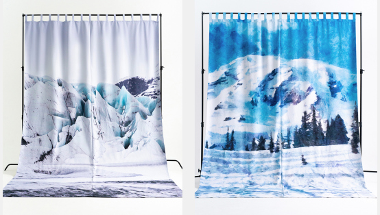 Зимние дизайнерские тканевые фоны Ice и Mountains доступны для бронирования в любом из наших залов.