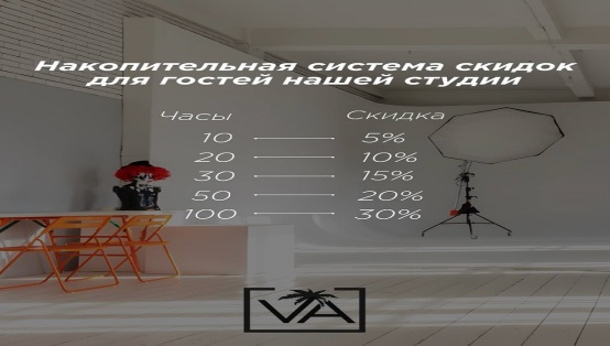 Копятся часы, проведённые в студии и Вы получаете скидку.