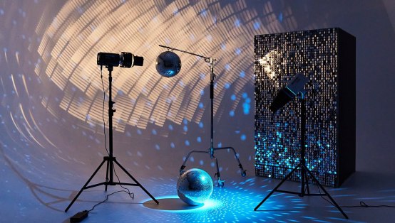 Подсветите источником диско-шар или зеркала. В State для создания бликов есть также голографическая пленка и зеркальный фон. Их можно класть на пол или повесить на стойки.