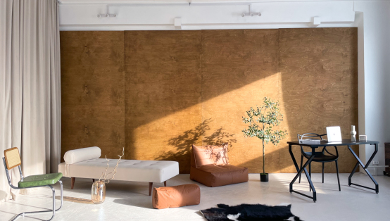 До обеда солнце светит на циклораму, после обеда светит на деревянную стену.
