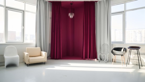 Зал с циклорамой и доп. локациями; много реквизита, кубы, импульсный свет профото и видеосвет в комплекте