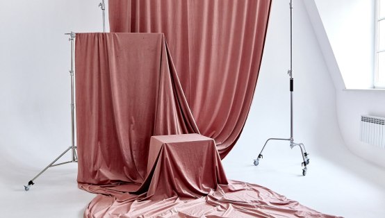▫️Сочетать их с обычными стойками, чтобы сделать интересные драпировки с тканевыми фонами. Идея для сет-апа: холст + тканевый фон на C-stand.