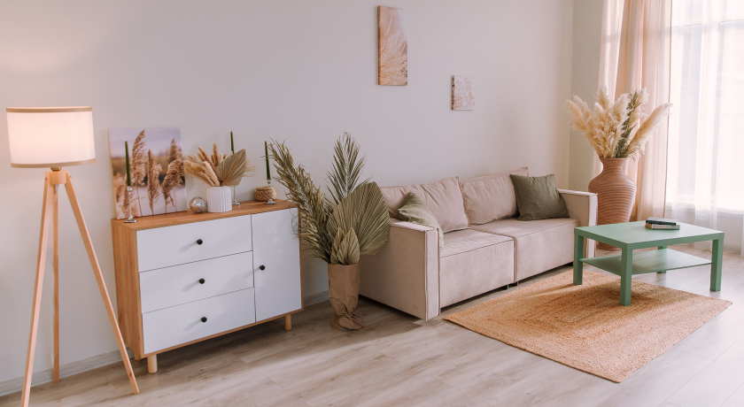 Декорации, Диван, Диско-шар, Журнальный столик, Картины, Ковёр, Комод, Кресло, Пуф, Распашные двери, Стул, Сухоцветы, Торшер, Цветы