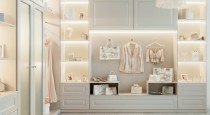 — локация с белым шкафчиком, украшенным в новогоднем оформлении, большой елкой и детскими игрушкам;