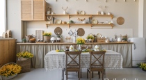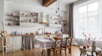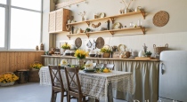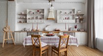 — светлая кухня в деревенском стиле;