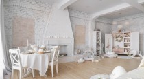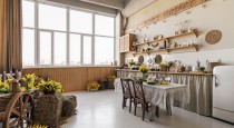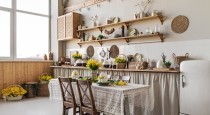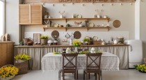 — светлая кухня в деревенском стиле;