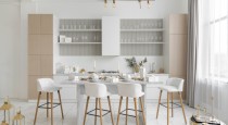 — зона кухни светлых тонов со столешницей под камень (ВНИМАНИЕ! Кухня нерабочая);