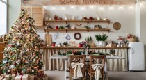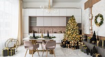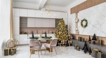 — светлая кухня в стиле прованса с новогодними декорациями;