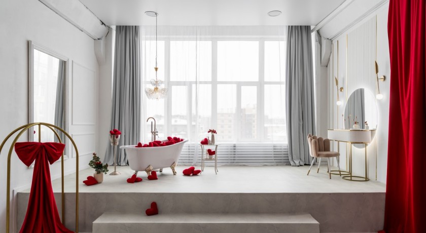 — роскошная ванна, наполненная красными сердцами, на подиуме (ВНИМАНИЕ! Ванна нерабочая);