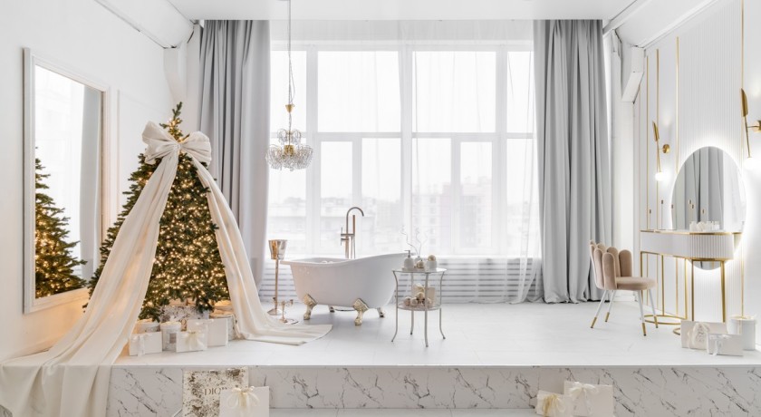 — роскошная ванна на подиуме с пышной елкой (ВНИМАНИЕ! Ванна нерабочая);