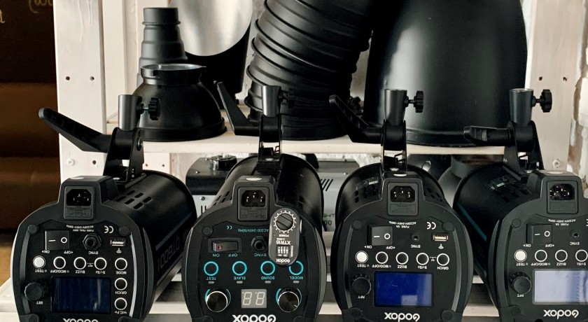 - Godox QT600II — 2 шт (высокоскоростные вспышки, предназначенные для фотосъемки движущихся объектов);