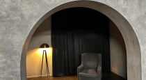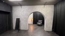 Просторный зал с чёрной циклорамой и архитектурной аркой. Циклорама с подогревом. Блэкаут шторы, кубы, чёрные и серые сткны. Дизайнерский интерьер. Бесплатный безлимитный базовый свет, импульсный и постоянный.