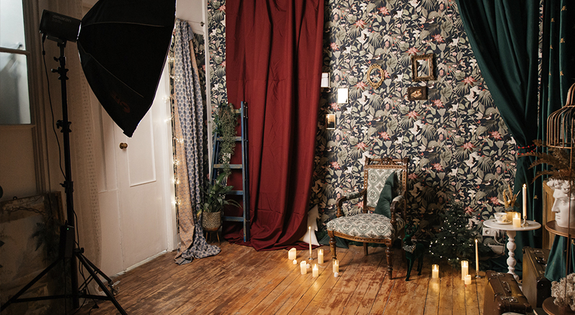 Небольшая комната для экспериментов с портретными снимками и творческими фотосессиями. Подходит для съемок в стиле гранж, будуар, арт, классика.