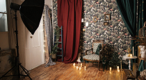 Имеется 2 зоны: циклорама и зона с новогодней локацией на красном фоне. В 2 раза больше возможностей для съемки.