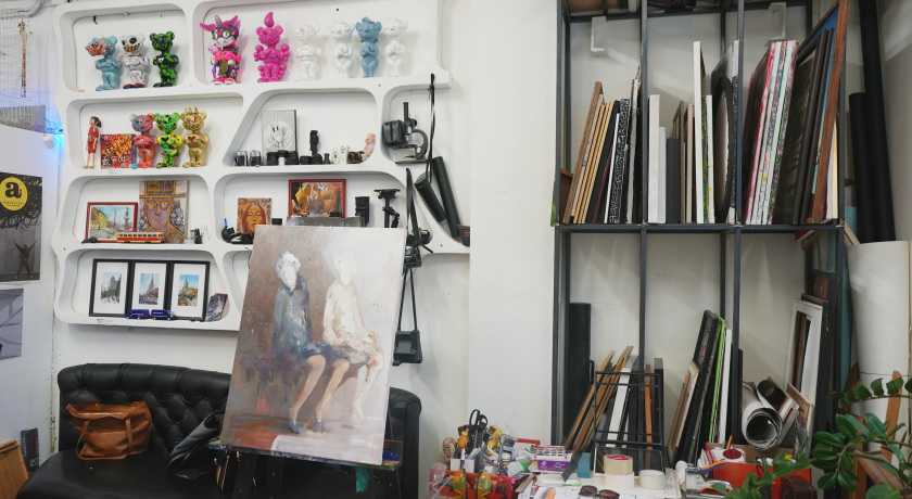 Атмосферное, просторное, пространство галереи (250 кв. м.), включает выставочный зал (180 кв. м.) ресепшн, бар, холодильник, чиллаут зону и гардероб.