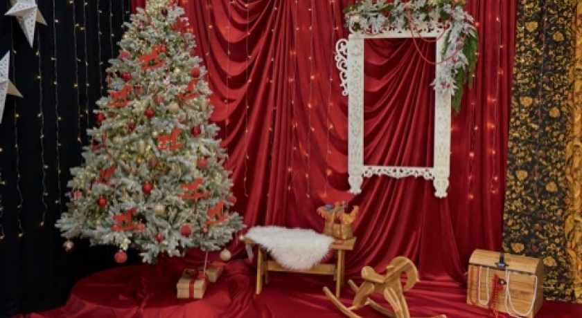 Есть стена с бумажными фонами (2.7 м) и интерьерная зона