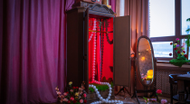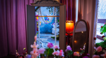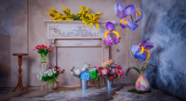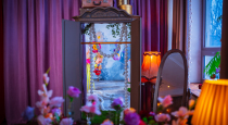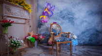 Интерьерный зал c несколькими сказочными локациями: объёмная локация "Волшебный шкаф", "Сад " с ростовыми цветами и аркой, камином, "Будуар" и др. Гримерная с визажным местом. Профессиональное студийное оборудование. Много солнечного света. Шторы блэкаут.