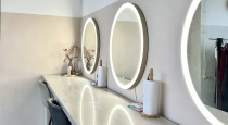 2.5. В зоне ресепшн есть 3 гримерных места, доступные к заказу отдельно от залов. Гримерное место представляет собой место за общей столешницей, пожалуйста, учитывайте это при бронировании. . Каждое место оснащено зеркалом с ярким естественным светом и розеткой для подключения плойки/фена, и достаточно для размещения всех необходимых аксессуаров для мейка и укладки. Стоимость часа аренды гримерки в зоне ресепшн с 9.00 до 21.00 – 300 руб.