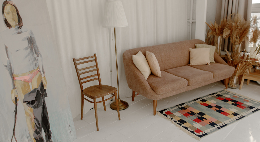 Чистая глубокая пятиметровая циклорама, которая падает на падающий солнечный свет. Бохо-зона с диваном, сухоцветами и гипсовыми головками. Уютный уголок на втором этаже, с спальнями и тропической стеной, как в номере отеля на Бали. Большой выбор дополнительного оборудования, например, несколько видов тканевых фонов у нас бесплатно.