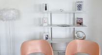 два розовых стула для съемок подкастов и интервью;