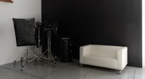 Большая циклорама шириной 7 метров и длиной 5,5 метров, подвесная автоматическая система для бумажных фонов. Разные стильные стулья. Полный комплект студийного оборудования.