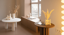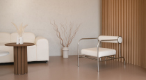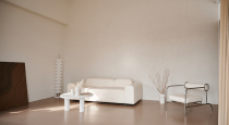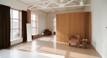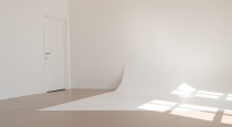 Светлый зал с красивыми песочными и белыми стенами. Циклорама 3,2*3 м. Переносная декоративная стена, современный интерьер.