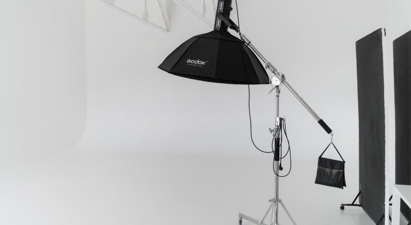 Большая циклорама шириной 7 метров и длиной 5,5 метров, подвесная автоматическая система для бумажных фонов. Разные стильные стулья. Полный комплект студийного оборудования.