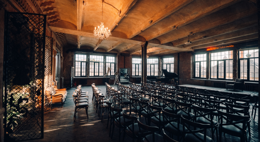Просторный атмосферный зал с множеством фактур, позволяющих создавать в кадре совершенно разные истории.
