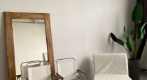 - Белый стул, серая металлическая тележка и много аксессуаров;