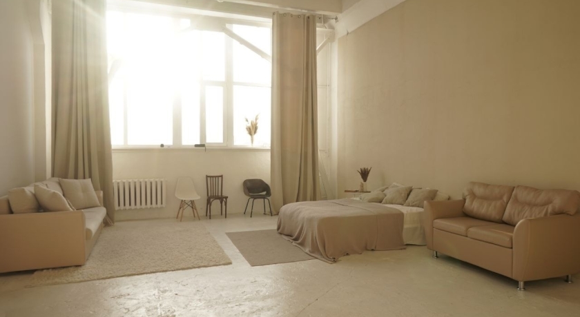 *Мебель: циклорама 6м*4м (24 кв. метра), высота 4м, диван, стулья, система бумажных фонов, зеркало, куб, столы, штатив для телефона и фотоаппарата