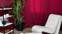 Локации с разнообразными интерьерами: красная кирпичная стена, имитация подземной парковки, бежевая фактурная стена с креслами, бордовая локация со шторами в тон и светлым креслом, бабл-уголок с черным креслом. Двигайте мебель, чтобы создать оригинальный контент.