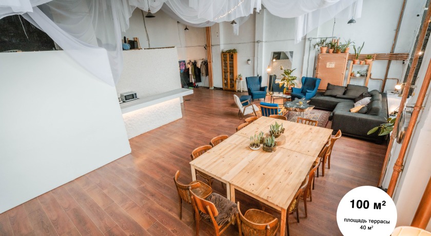 Представьте себе большую уютную квартиру и в ней гостиную 100 квадратных метров с высокими потолками. Там вы всегда хотели провести свой добрый праздник. Место, где до 50 человек чувствуют себя в своей тарелке, потому что здесь уютно, легко и безопасно.