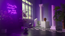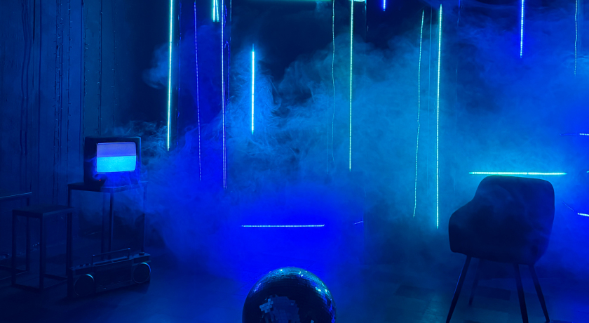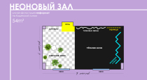 Зал визуально разделён на две части – тёмную с неоновой стеной и светлую с растениями. Весь декор, представленный на этой карточке, входит в базовую аренду!