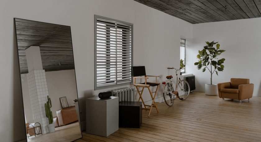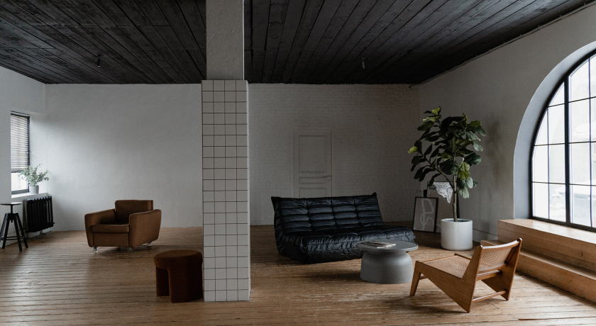 Зал SKY - это море дневного света благодаря большим окнам в пол. Светлый и легкий интерьер подойдет для любой съемки.