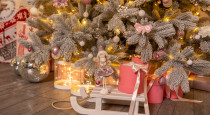 3️⃣В третьей фотозоне небольшая детская комната: диванчик, шкаф, камин и большая заснеженная елка в серебряных шариках. Эту фотозону также можно слегка изменить и сменить настенный гобелен с новогоднего на посвященный дню рождения.
