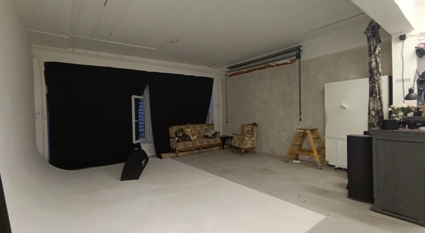 У нас есть: белая циклорама (3000 на 5000 метров), много источников света с различными фильтрами, цветные бумажные и тканевые фотофоны, антикварная мебель и отдельная большая гримерка.