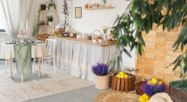 Зал в скандинавском стиле — имитация квартиры. 90кв. м. светлый зал и обновленная зона кухни