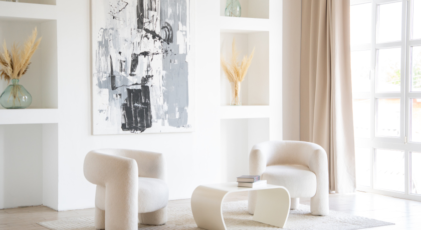 3) Солнечная зона с белоснежной софой — для легких, естественных композиций.
