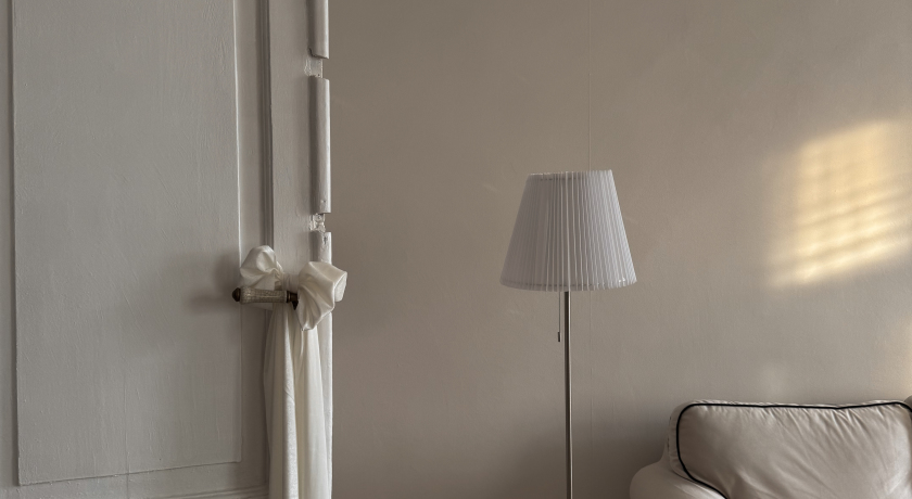 В центре комнаты — кровать с балдахином, рядом с которой расположены прикроватная тумба, встроенный шкаф с летящими платьями, напольное зеркало в деревянной раме — всё, что нужно для создания женственных и романтичных кадров. По разные стороны от балкона расположены ширма для переодевания и винтажное трюмо с реквизитом для предметных снимков.