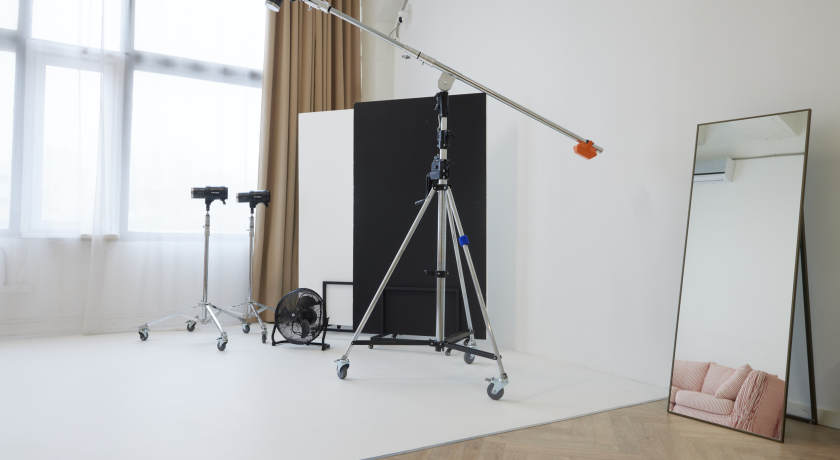 В стандартное оборудование зала входит 2 импульсных источника света profoto D1 500 (насадки по запросу), радиосинхронизатор, технический белый стол, рейл для одежды, ростовое зеркало, ширма для переодевания. Складные стулья, блютус колонка.