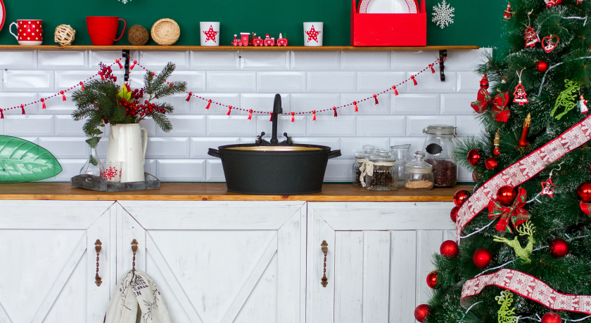 - в нём сразу несколько разных зон и локаций: Новогодняя зона с камином, рождественская кухня в классической цветовой палитре Рождества, и уютная белоснежная спальня укутанная в тысячи огоньков.