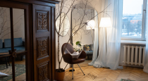 2)Зал Гостиная - диван, кресло, массивное зеркало в полный рост, лампы, кофейный столик, винтажный шкаф, туалетный столик и текстиль создают кадры в духе французского editorial. Идеально подходит для lifestyle, личных съемок, съёмок одежды и интерьерного контента.