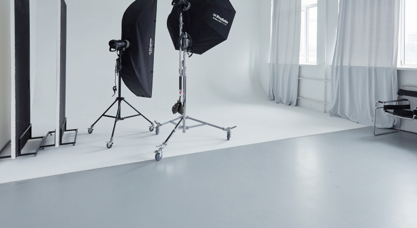 Большой функциональный зал с тремя большими окнами и угловой циклорамой. В зале бетонные полы, фактурные стены в светлых тонах, разнообразная мебель и гримерный стол. Идеален для масштабных съемок. Имеется возможность установки пилона, а также имеются крепления для подвесов.