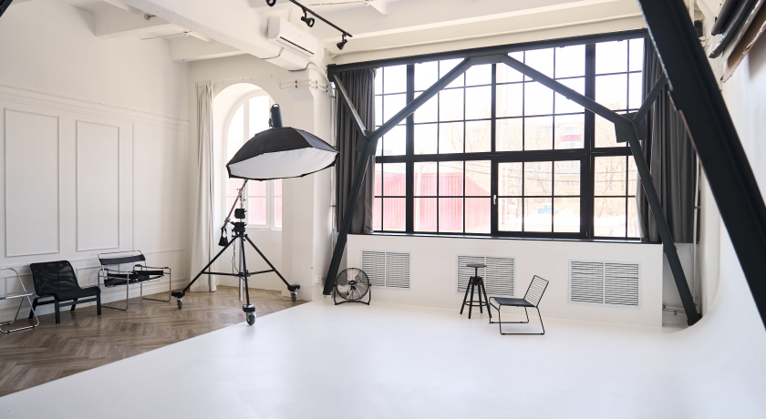 Зал уникален тем, что вы можете сделать и новогодние фото в декорациях и снять стильную историю на циклораме, 2 в 1.