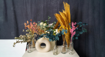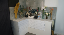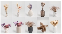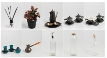 Большое количество цветных и фактурных фонов, а также реквизита - сухоцветы, искусственные цветы, вазы, кухонный и ванный реквизит, камни и тд.