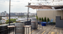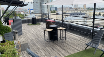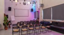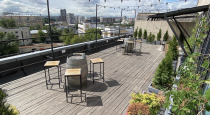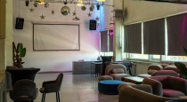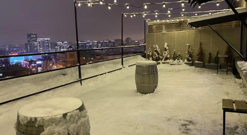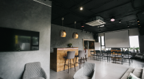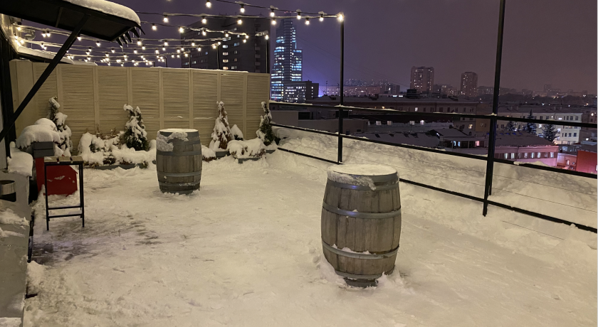 Зал наполнен светом благодаря большим окнам, а выход на крышу добавляет особую атмосферу и даёт возможность провести часть программы на свежем воздухе.