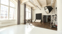 Зал WHITE представляет из себя пространство с белой угловой циклорамой 6х6М и огромными окнами. В зале предоставляется 3 моноблока Profoto d1 500, большая фрост рама 2х2м и стол для ноутбука.